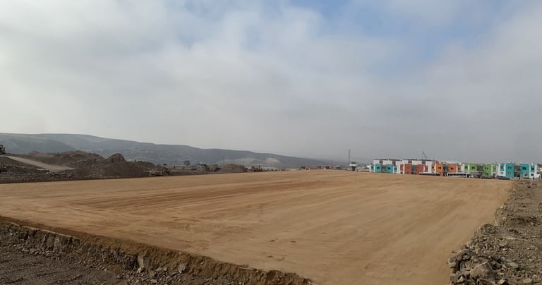 Formación de plataformas, patio de maniobras y estacionamientos en Parque Industrial Real de Rosarito. Rosarito 2023