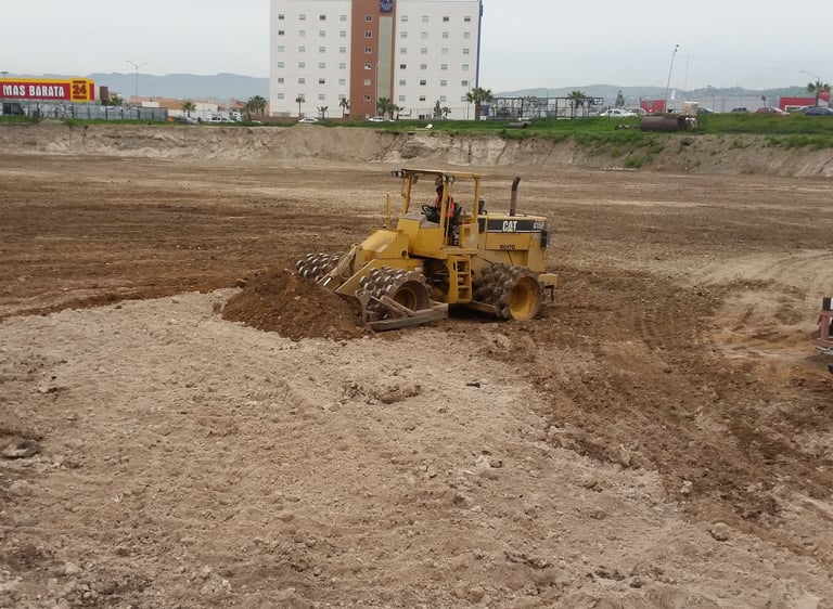 Para la construcción de plataformas, vialidades, obras pluviales y desarrollos comerciales, incluyendo estabilización de taludes y trabajos de nivelación con maquinaria pesada.